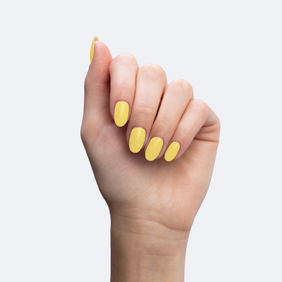 Mustard yellow. Medium-light. Opaque. Warm undertone.